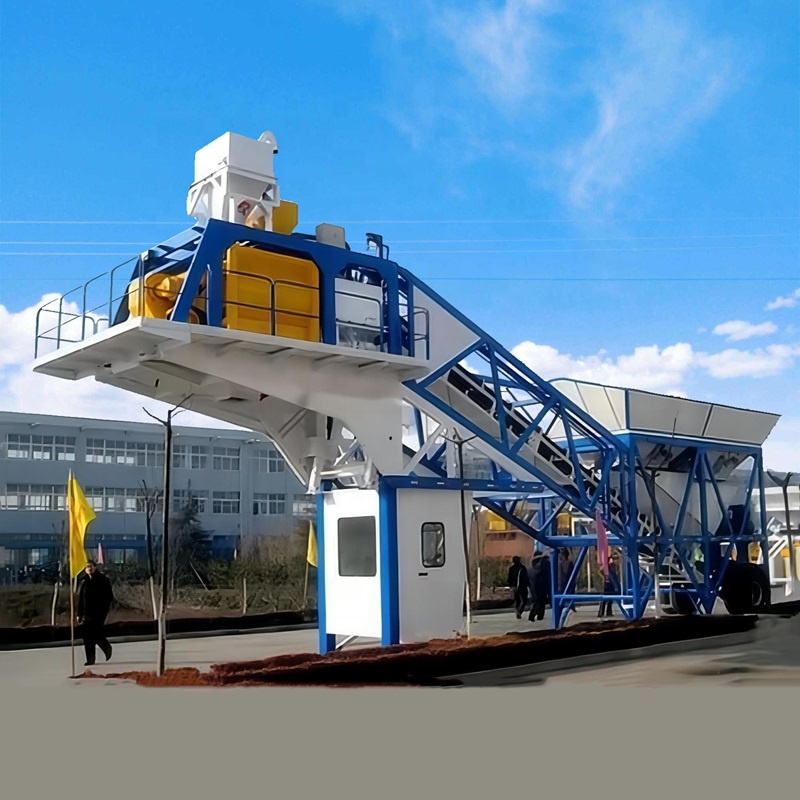 YHZS series mobile concrete mixing plant is one kind of high integration concrete mixing plant. It is designed for customers who need to change working site frequently. All components are fixed on the chassis of concrete mixing plant, and its wheels are easy to move. This plant is completely equipped with concrete batching system, mixing system, weighing system and fully automatic control system.